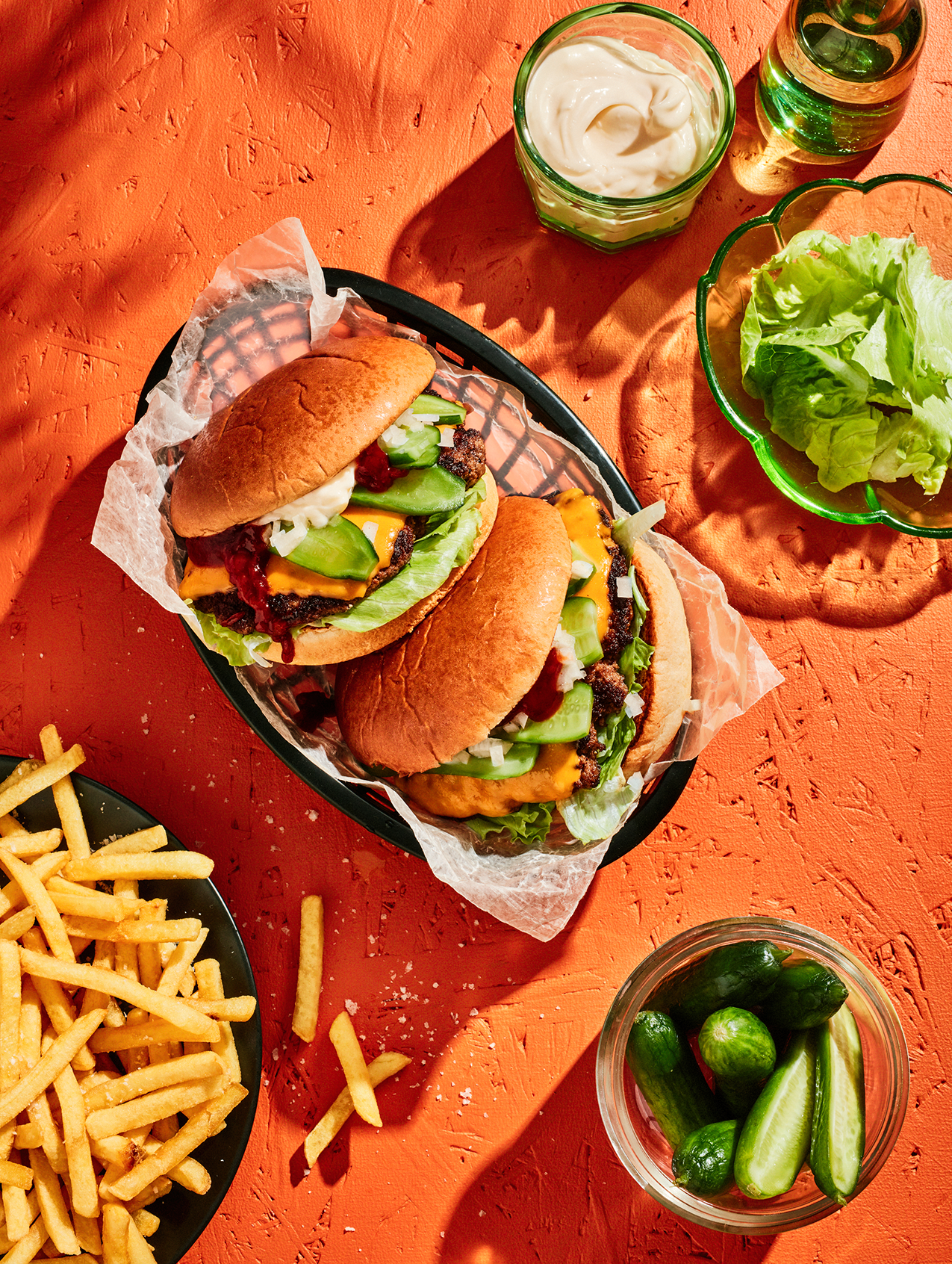 Vegoburgare med potatisklyftor och srirachamajonnäs