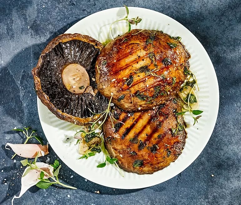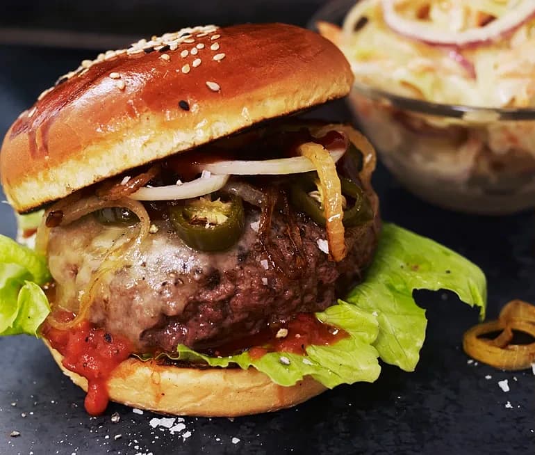 Maffig portabelloburgare med gruyèreost och karamelliserad lök