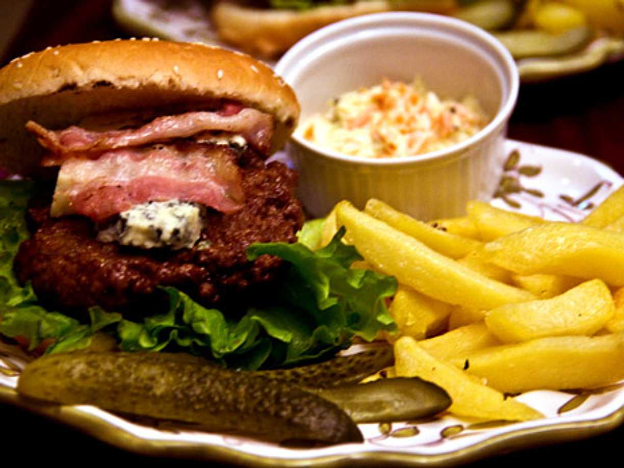 Slick Vic’s grilled bacon ‘n’ blue cheese burger