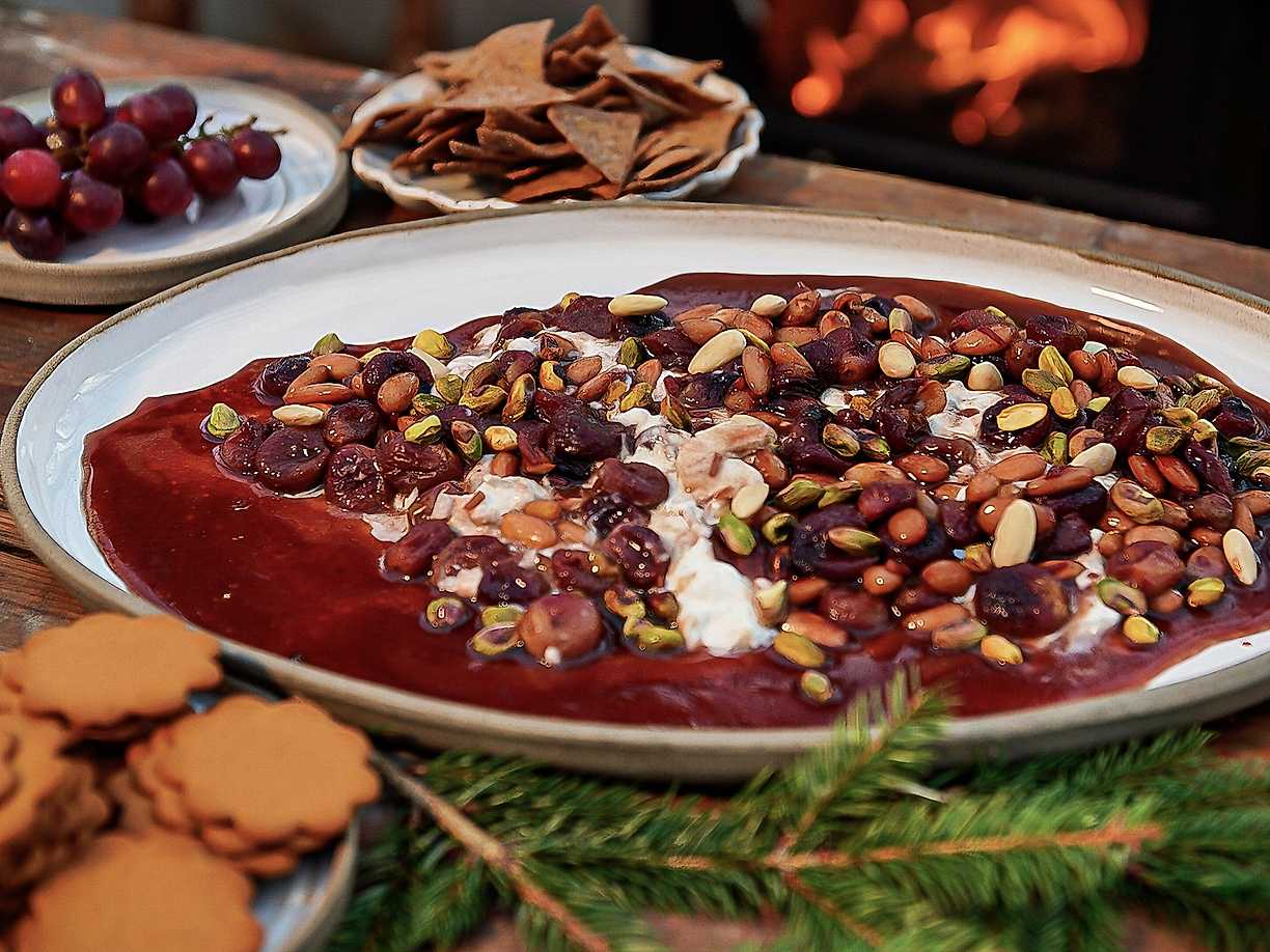 Burrata med pistagepesto och jordgubbar