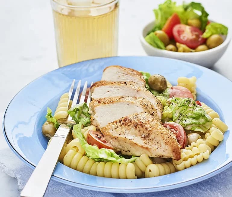 Kyckling och caesarsallad med pasta