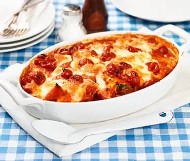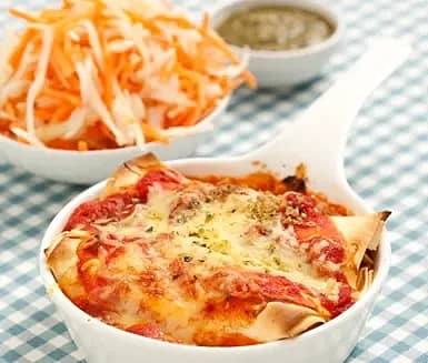 Cannelloni med svamp, färskost och oregano i tomatsås