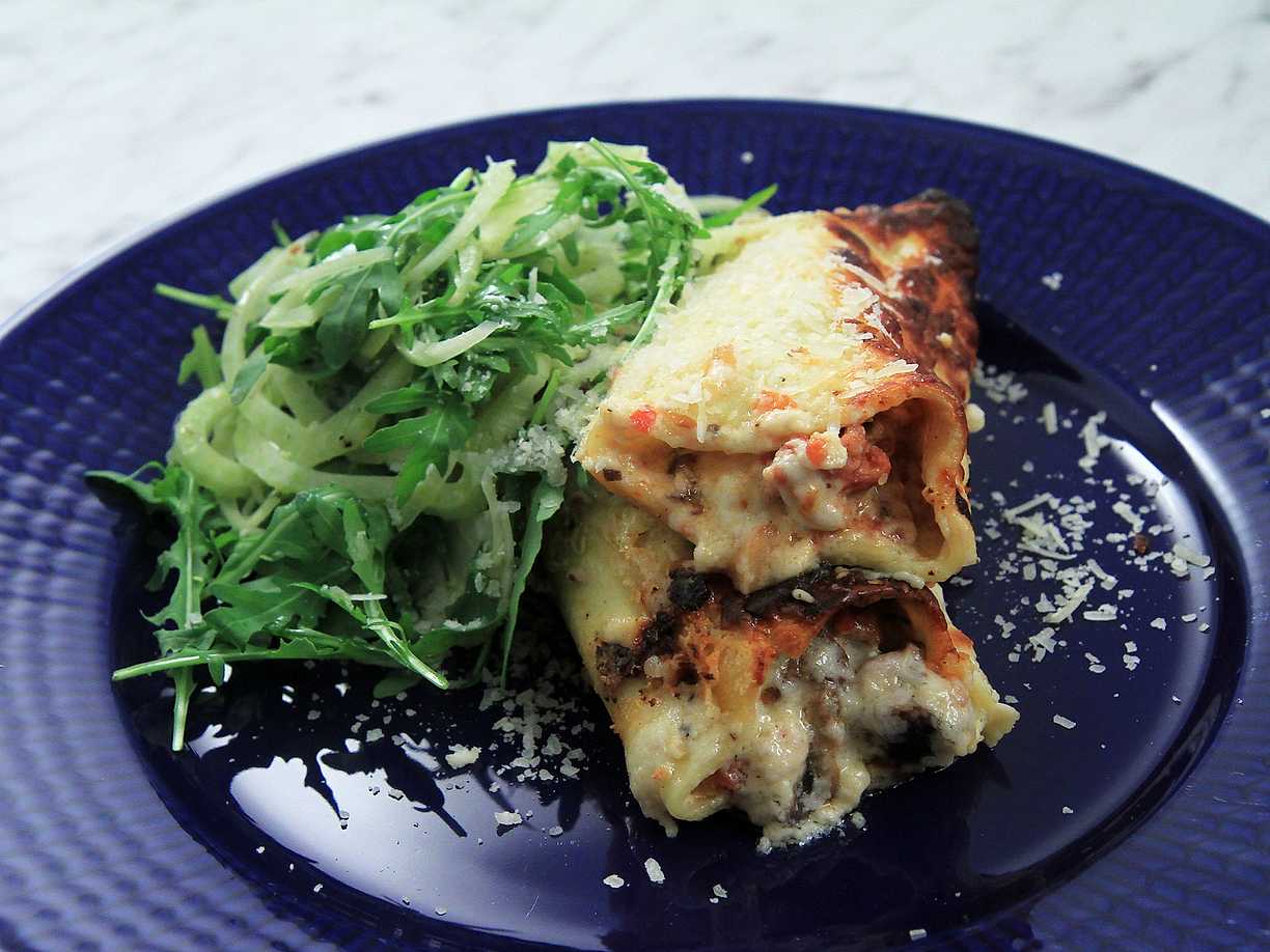 Cannelloni med rökt lax, ärter och Västerbottensost