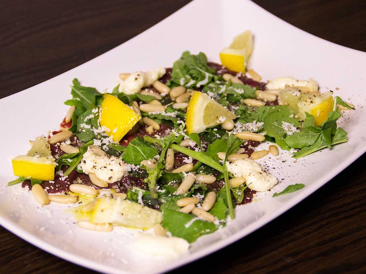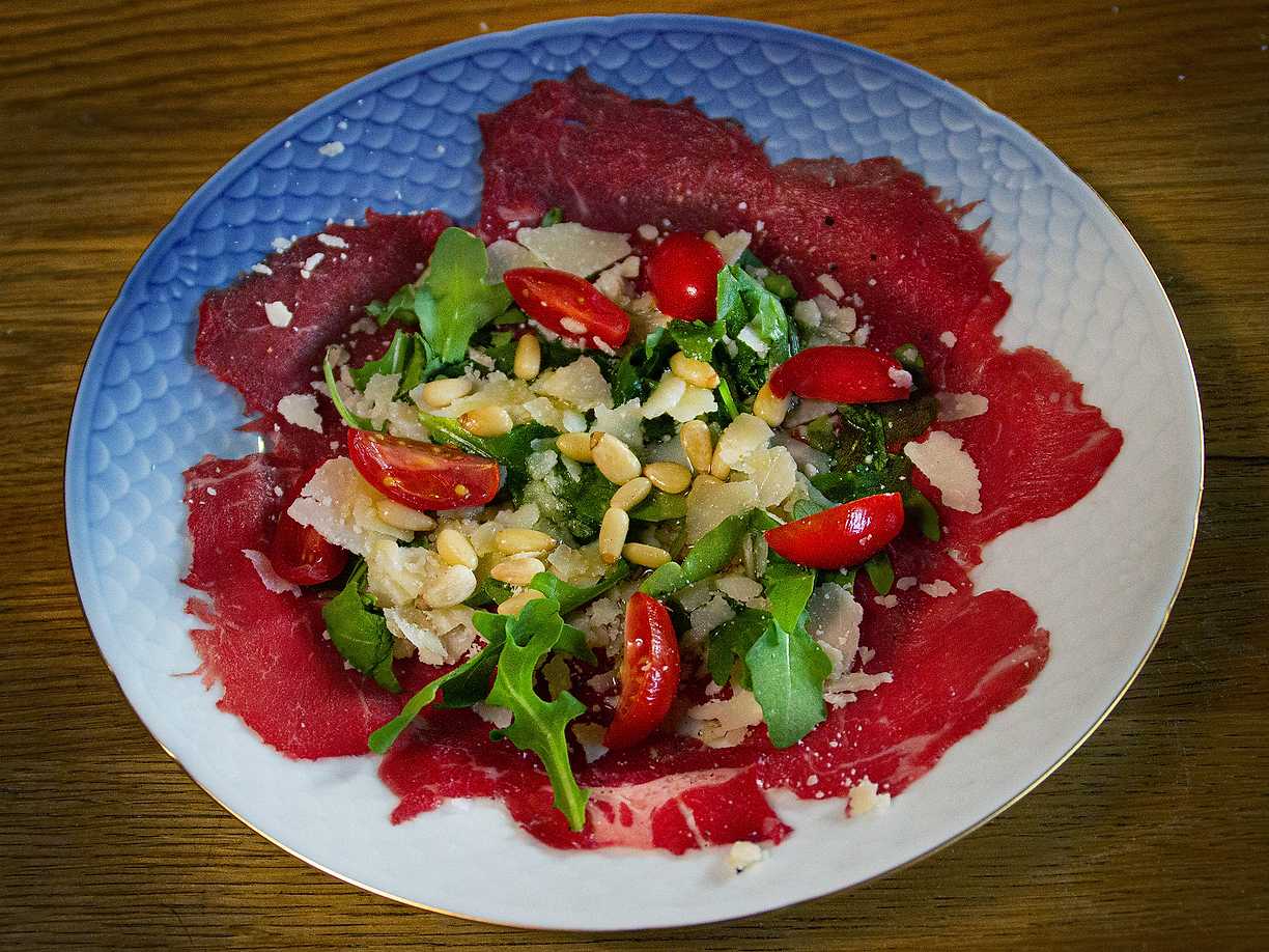 Carpaccio på oxfilé med parmesan och rostade pinjenötter