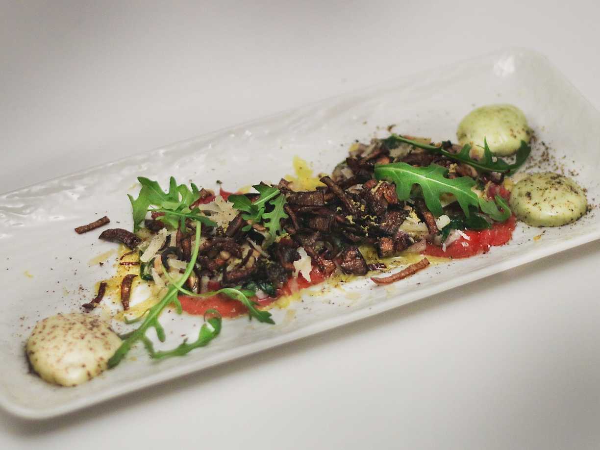 Carpaccio på älg med västerbottensost och pickles på svenska