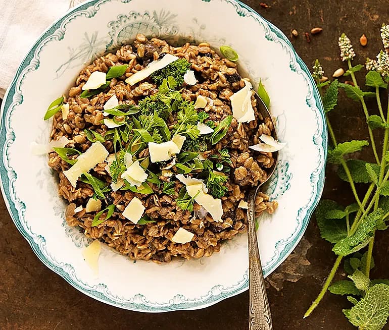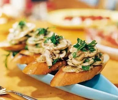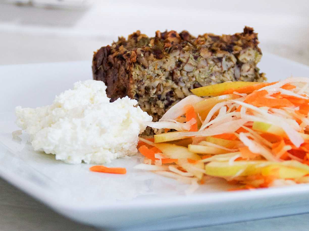 Champinjon- och hasselnötslimpa med vitlökskräm och råkost