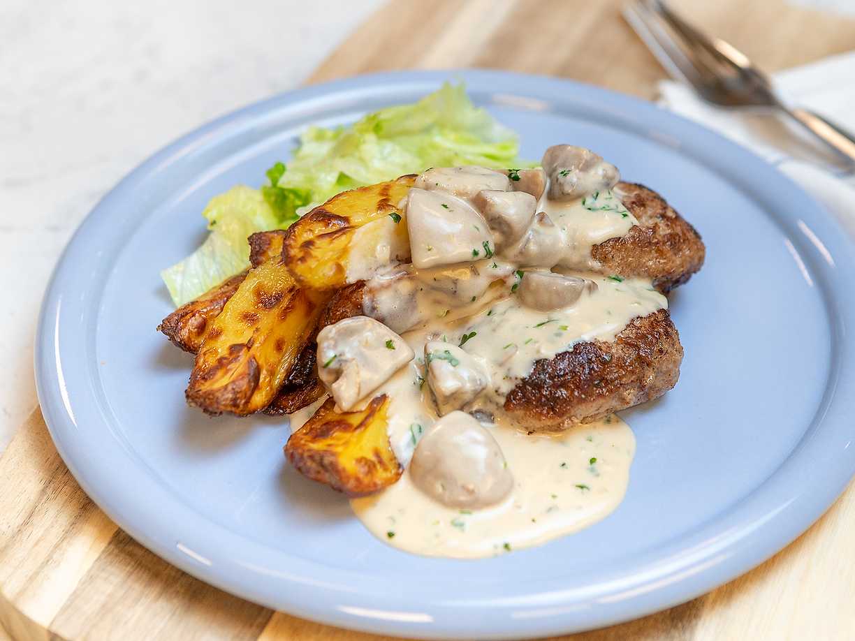 Dragonfärsbiffar i champinjonsås