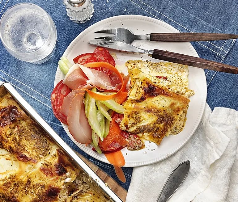 Paprikalasagne med charkuterier