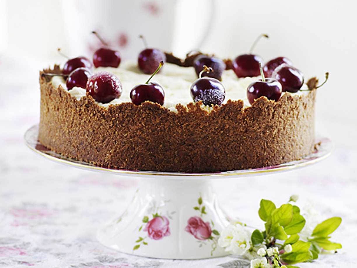 Cheesecake med körsbär och chokladtopping
