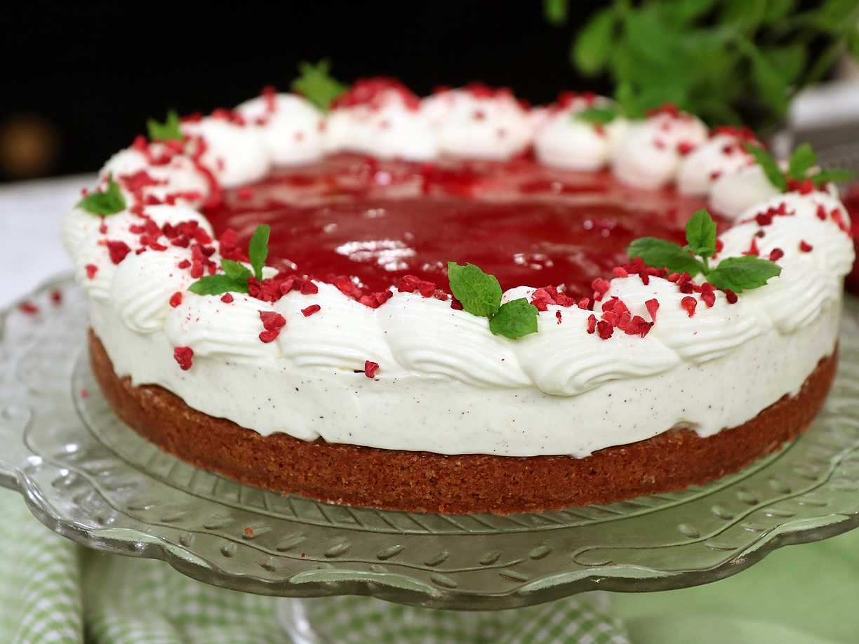 Cheesecake på pepparkaksbotten med hallonspegel