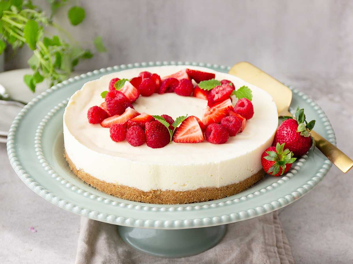 Klassisk cheesecake med röda bär