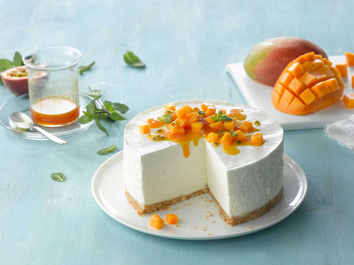 Frozen cheesecake med mango och passionsfrukt