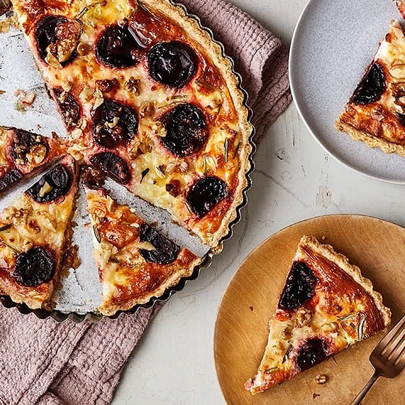 Rödbetspaj med chèvre och valnötter