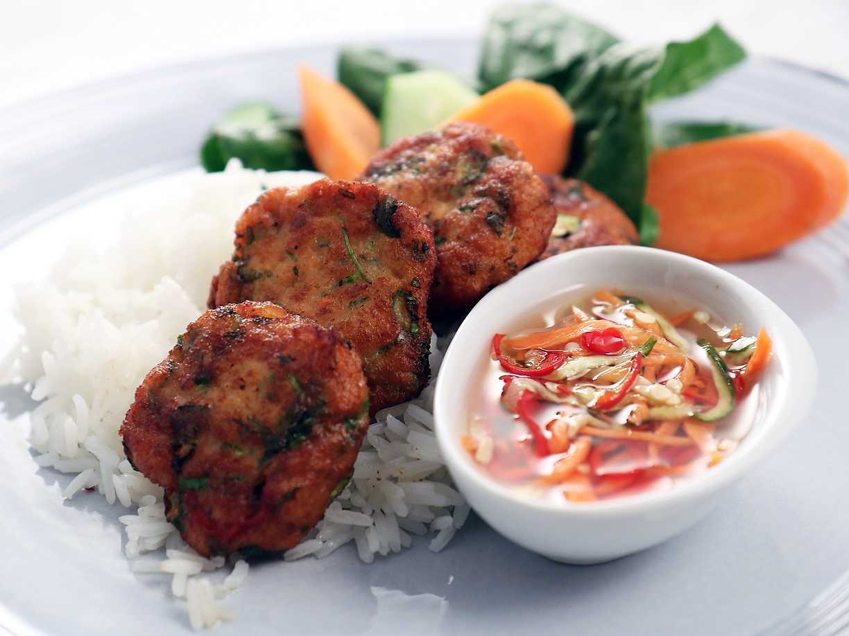 Risnudlar med hårdstekta räkor, chili och jordnötter
