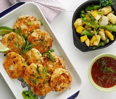 Crabcakes med sweet chili- och dilldipp