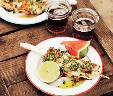 Grillad fisk med quinoa och chili- och limesås