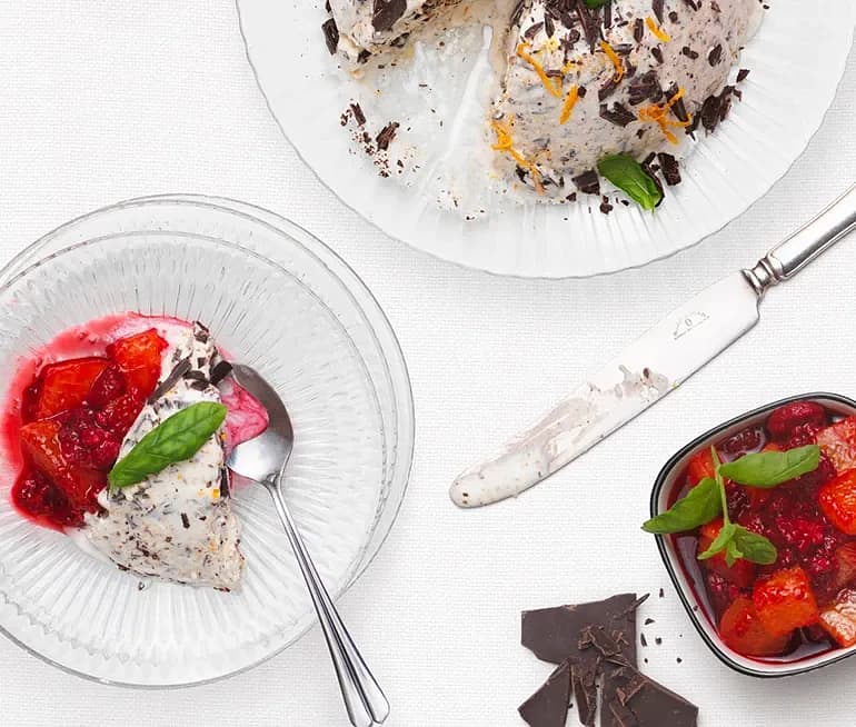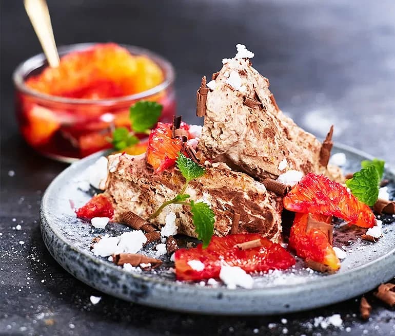Semifreddo med choklad och blodapelsin