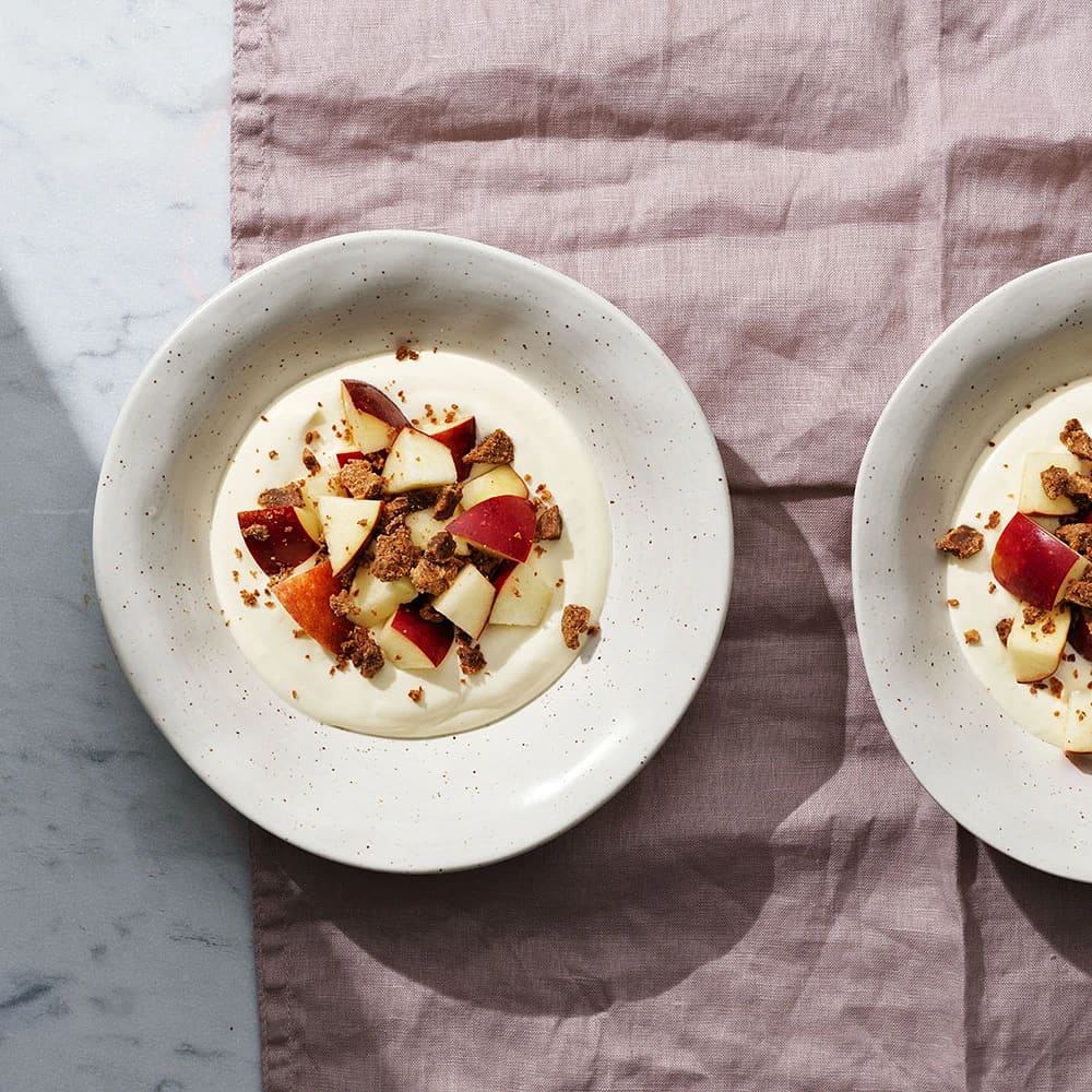 Mousse med kardemumma, äpple och rostad vit choklad