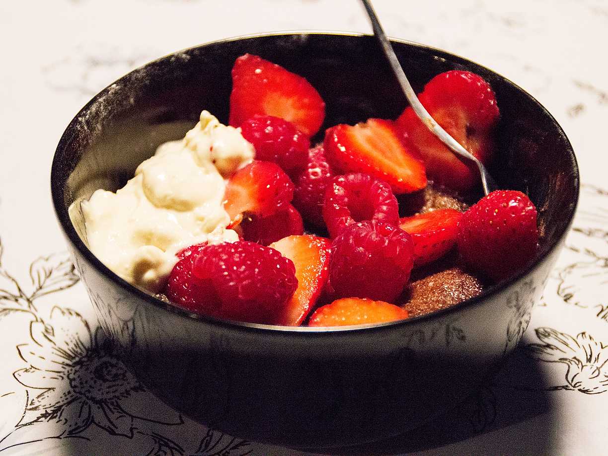 Brûlée på ljus choklad och hjortron