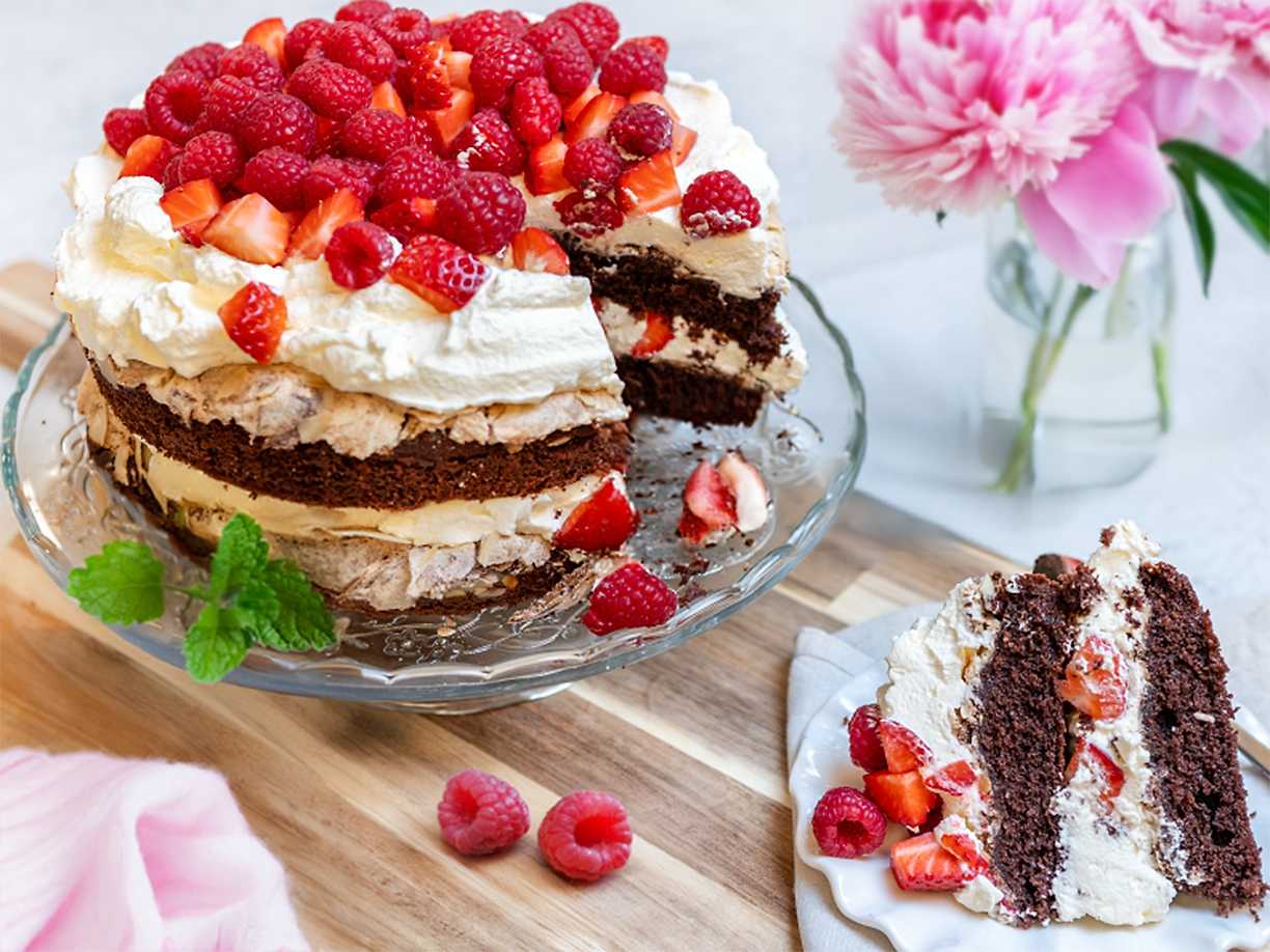 Emelies musikaltårta med hallon, kola och choklad