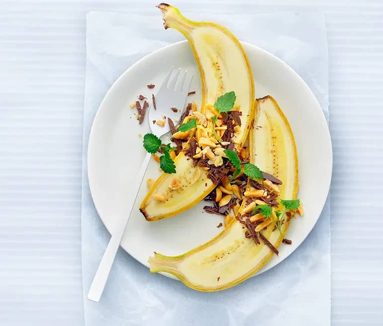 Banan med jordnötter och riven choklad