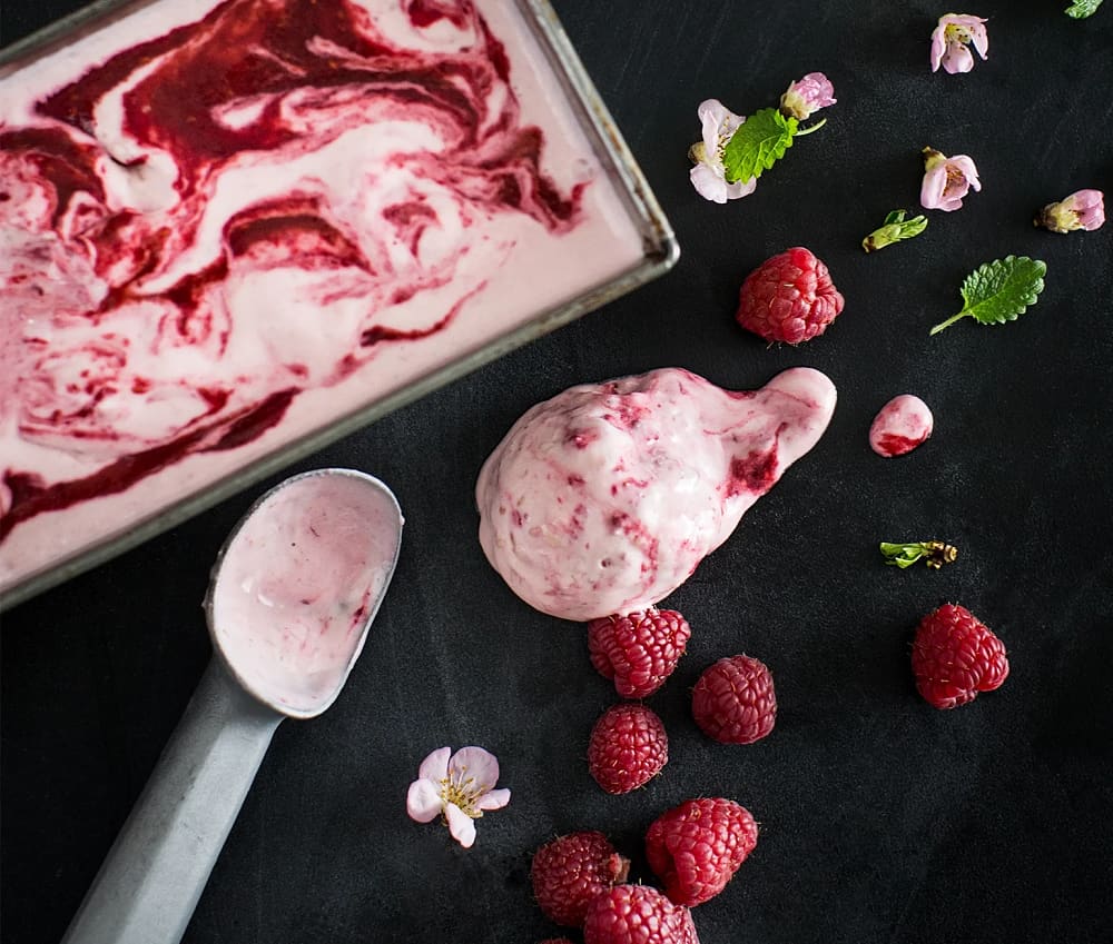 Hallonsorbet med vit choklad