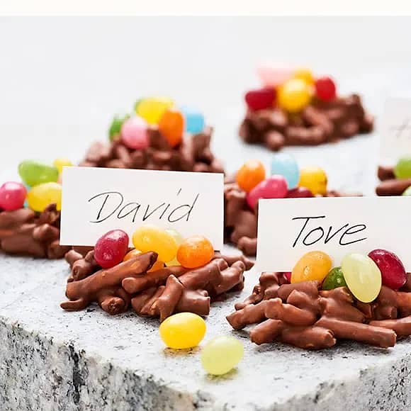 Fågelbon av salta pinnar och choklad