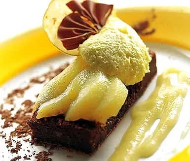 Inkokta päron med choklad & päronmousse