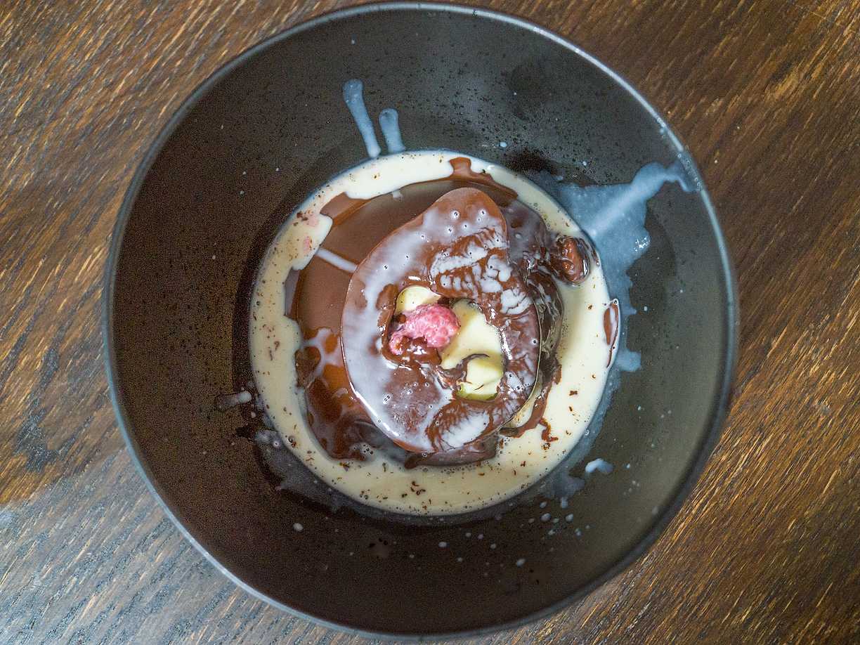 Hallonmousse med mynta och choklad