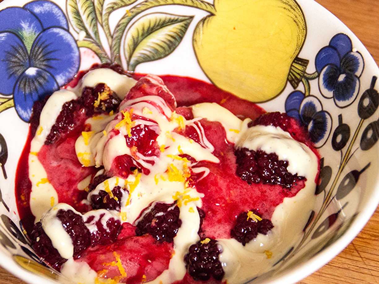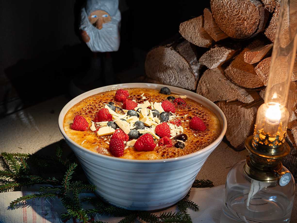 Risgrynsbrûlée med bär och vit choklad