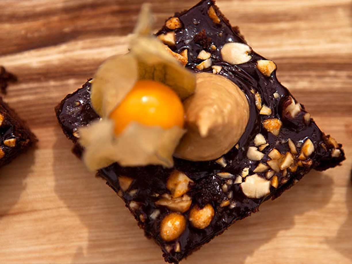 Mustig choklad- och jordnötsruta