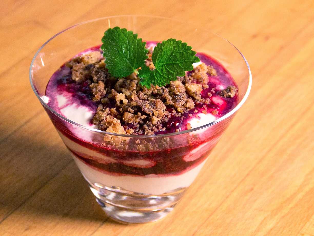 Blåbärssemifreddo med nötcrunch och vit choklad