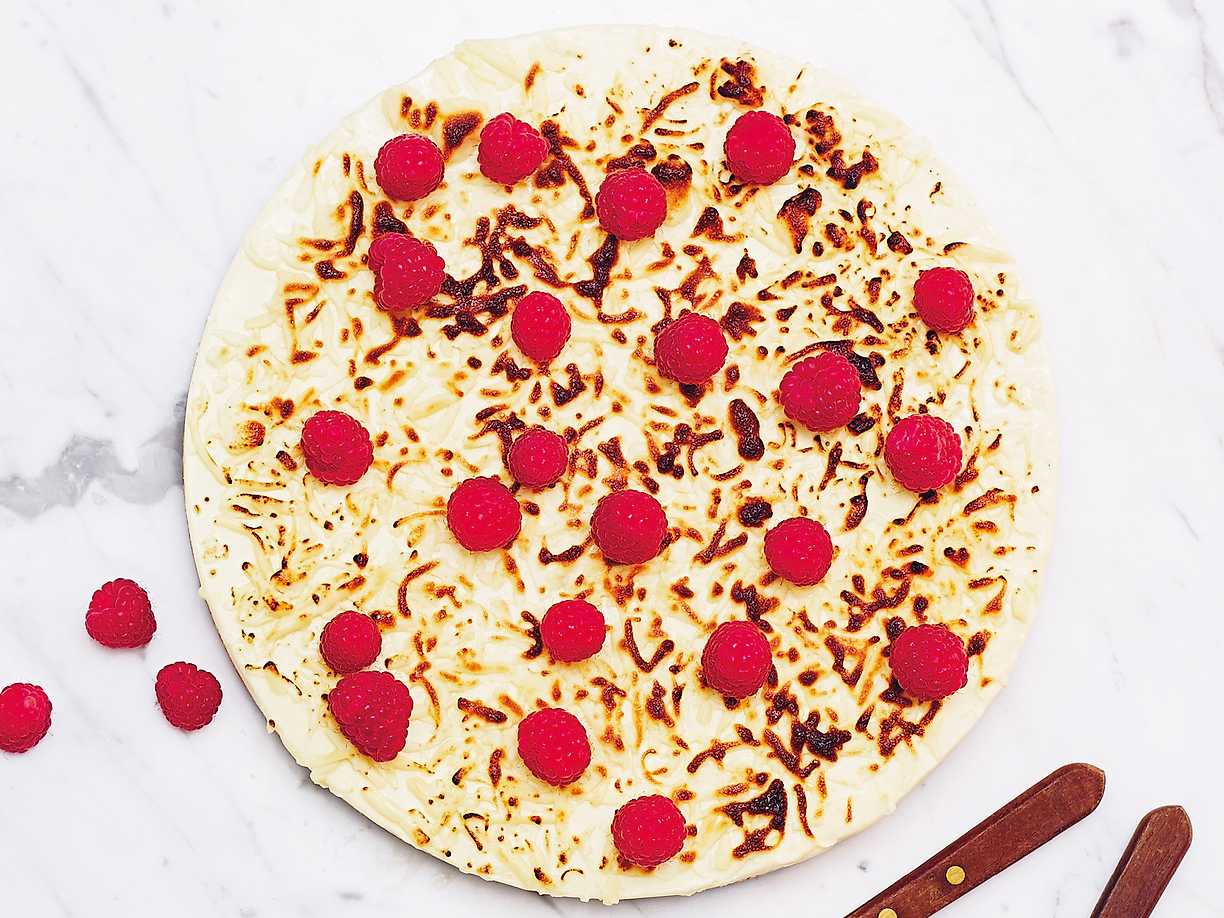 Vit choklad- och getostcheesecake med hallon