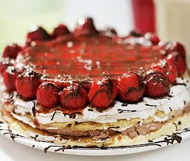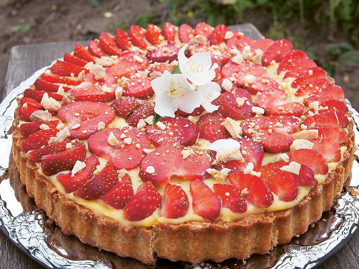 Drömpaj med mandel, vanilj, choklad och jordgubbar