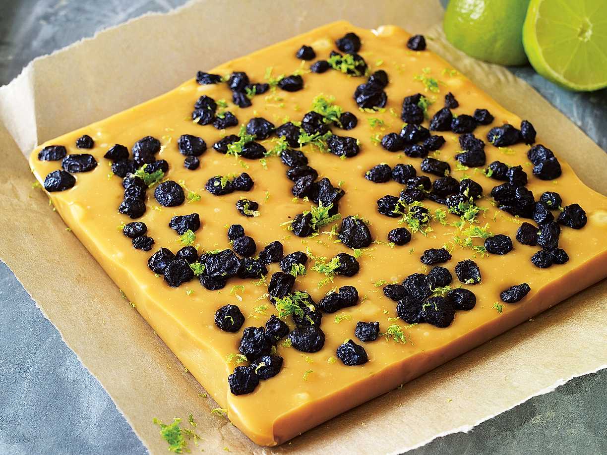 Limepannacotta med ananas, rostade nötter och vit choklad