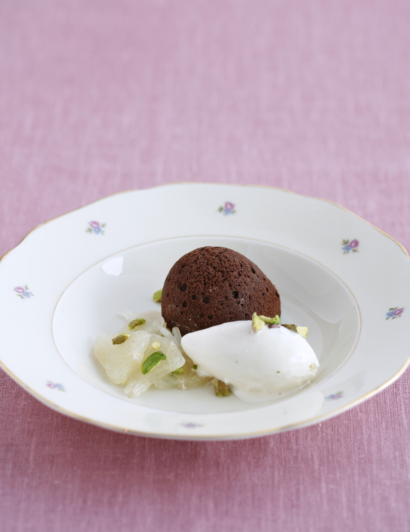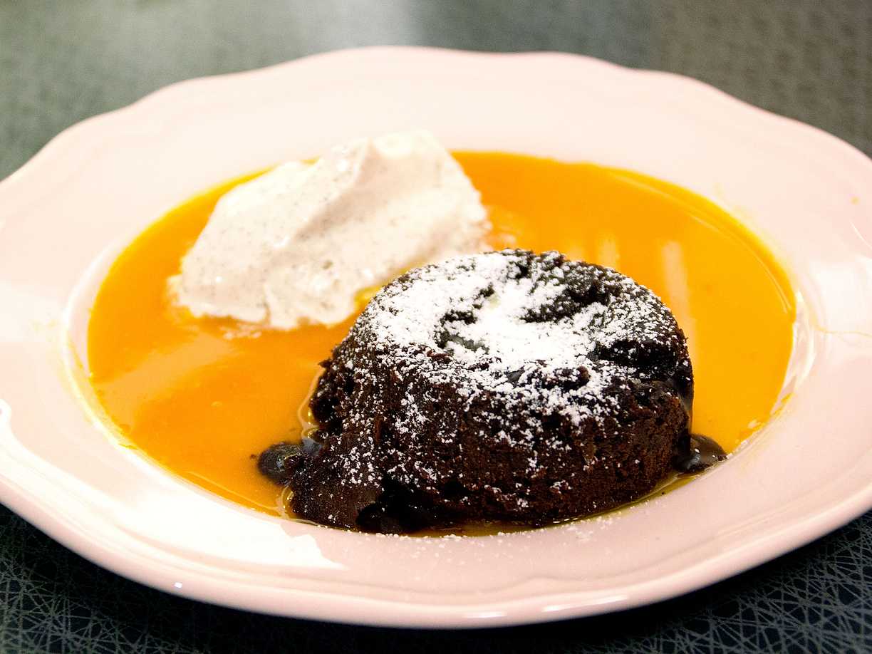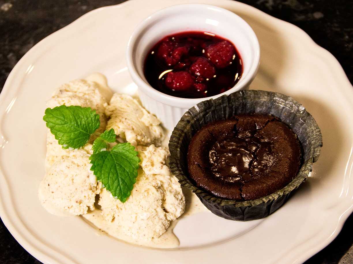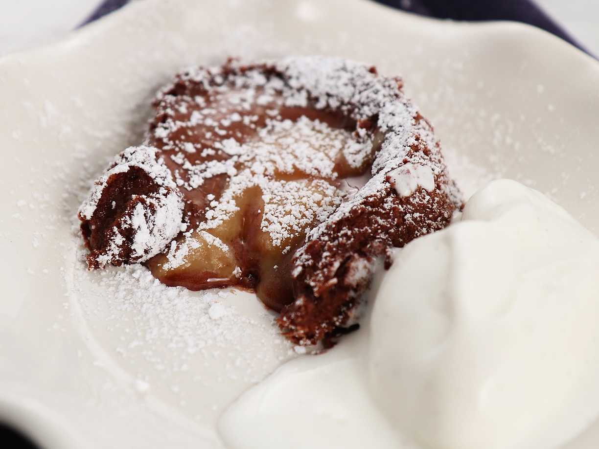Chokladfondant med salt kolakräm och vanilj-crème fraiche