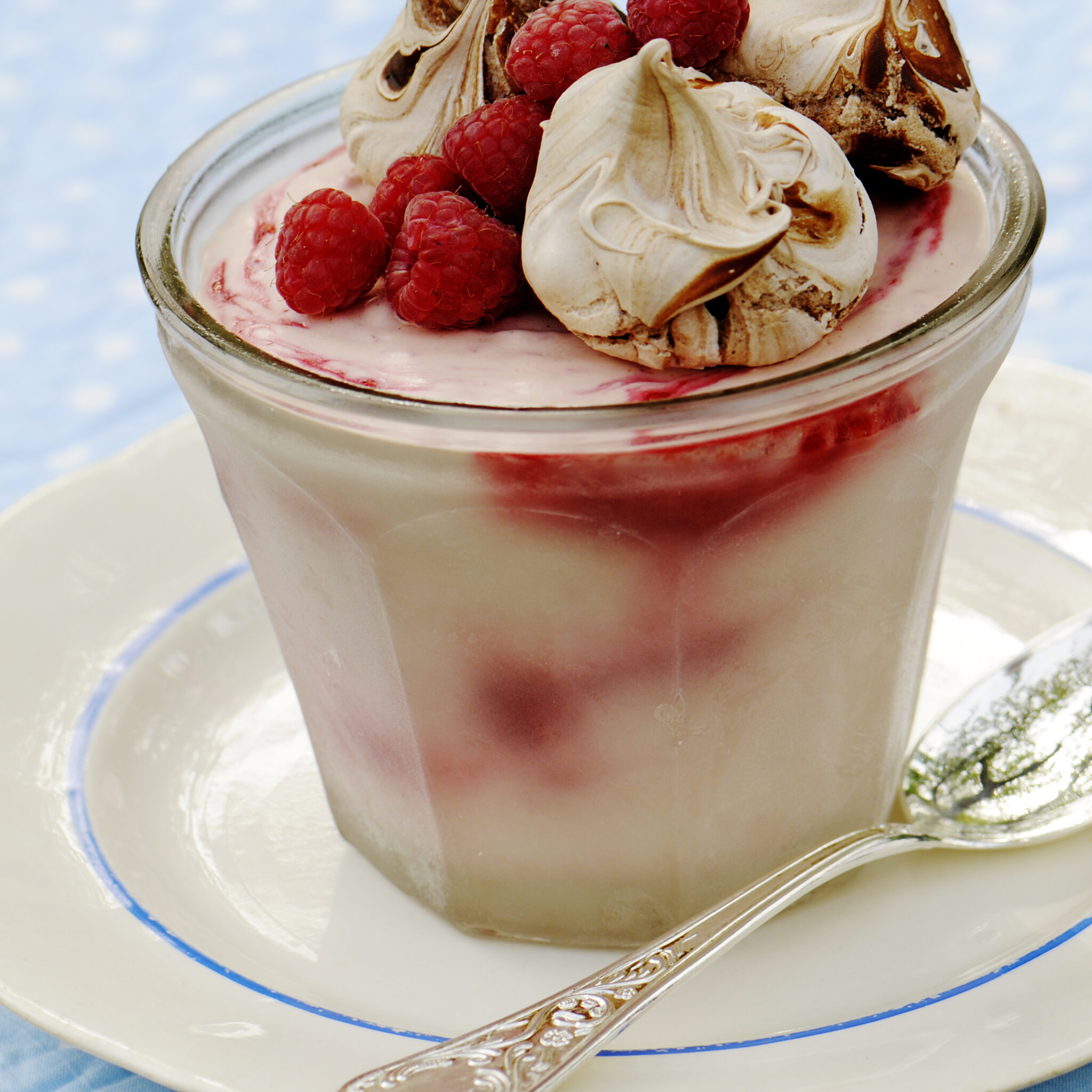 Hallonsemifreddo med chokladmaränger