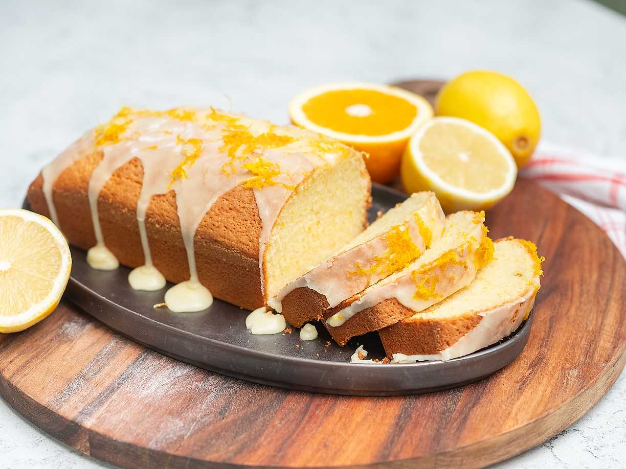Citron- och apelsinsockerkaka med citrusglasyr