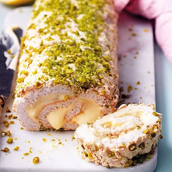 Marängrulle med citron och pistage