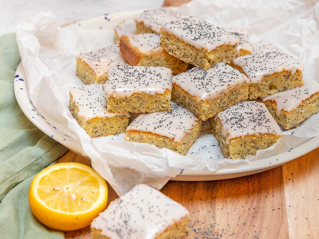 Blondies med citron och vallmo