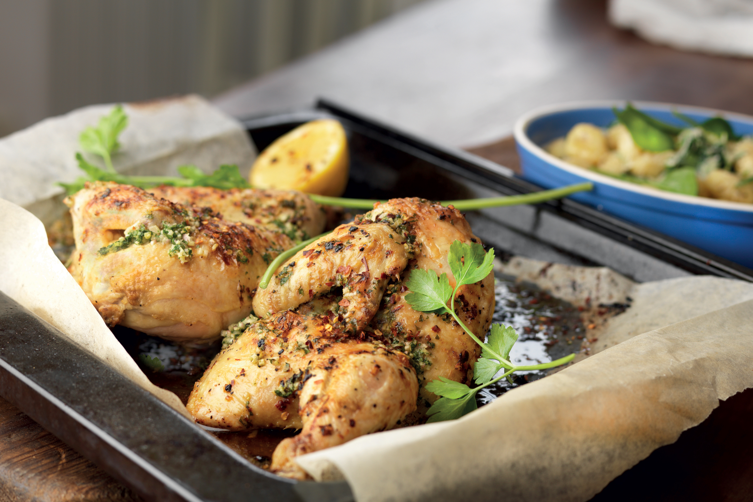 Citronkyckling och bönor med rosmarin och rostade grönsaker