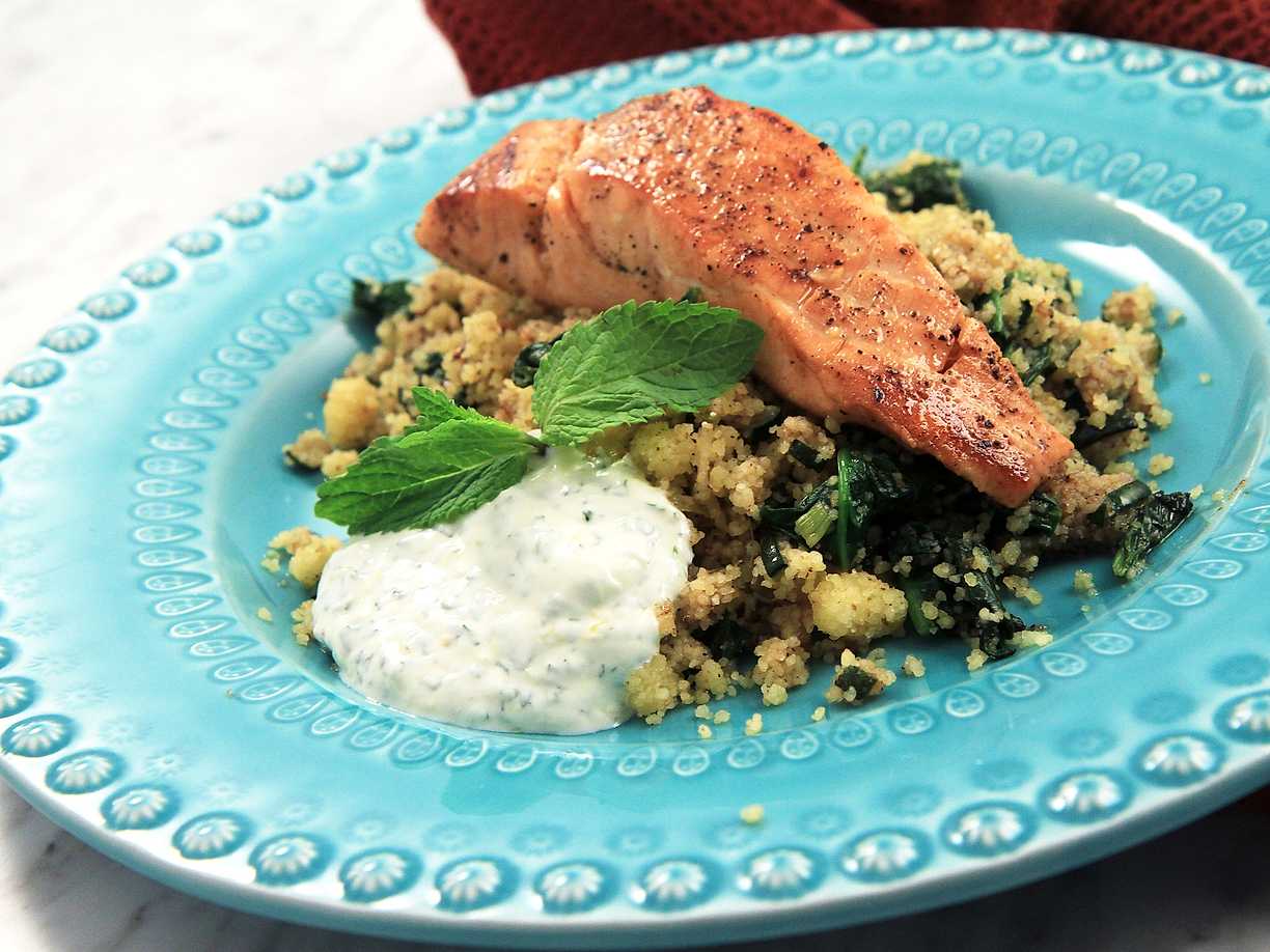 Citronlax med kryddig zucchinicouscous och myntayoghurt