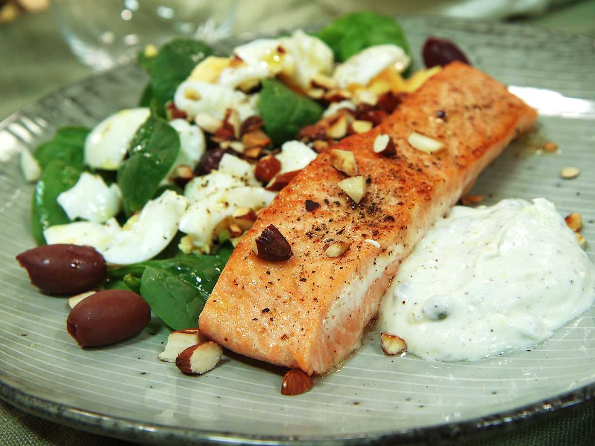 Stekt citronlax med yoghurtsås