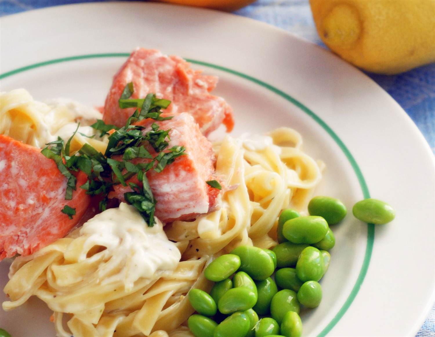 Lax med citronpasta och sojabönor