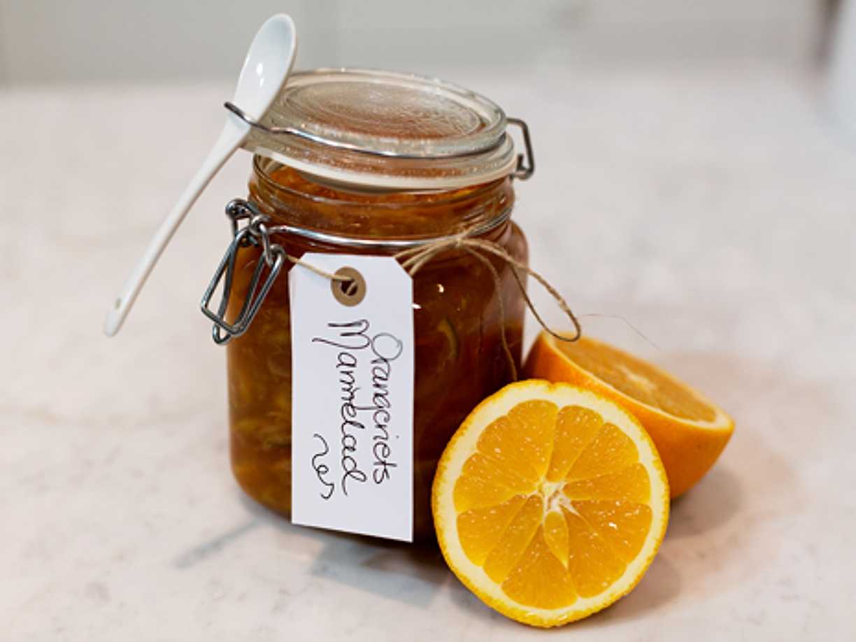 Orangeriets marmelad på aprikoser och citrusfrukt