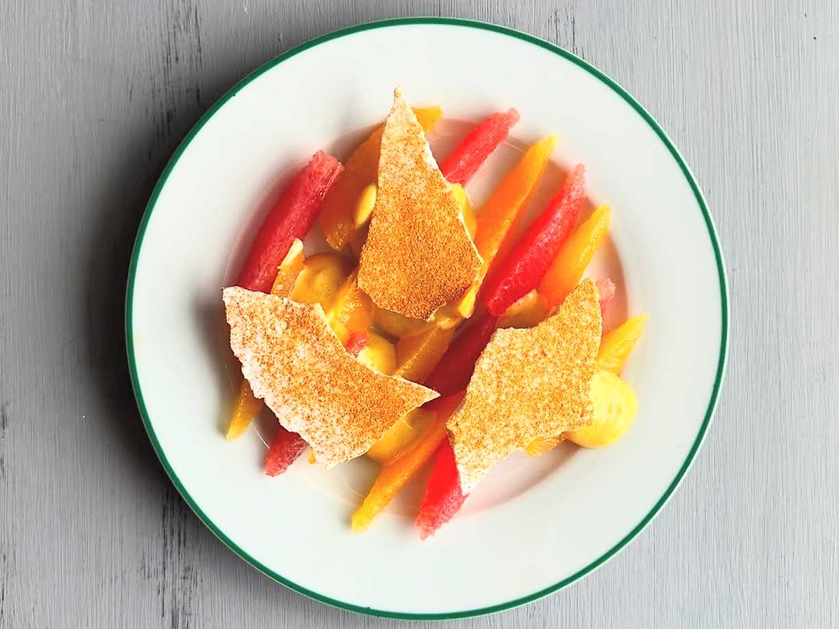Torskrygg med grillad citrus, parmachips och grön pesto