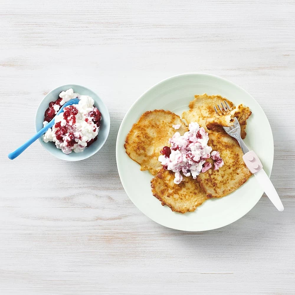Potatisplättar med cottage cheese och lingon