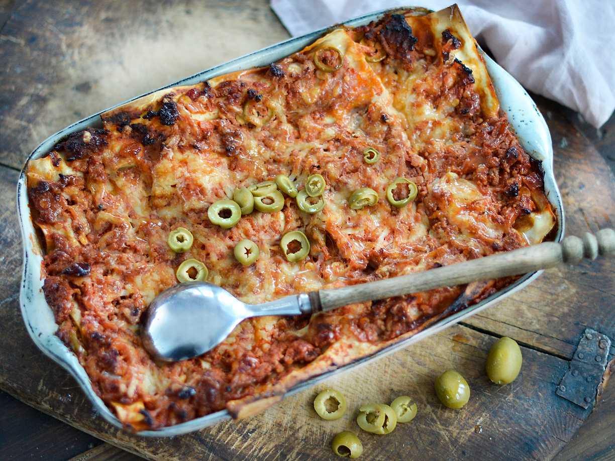 Lasagne med chili, cottage cheese och bladspenat