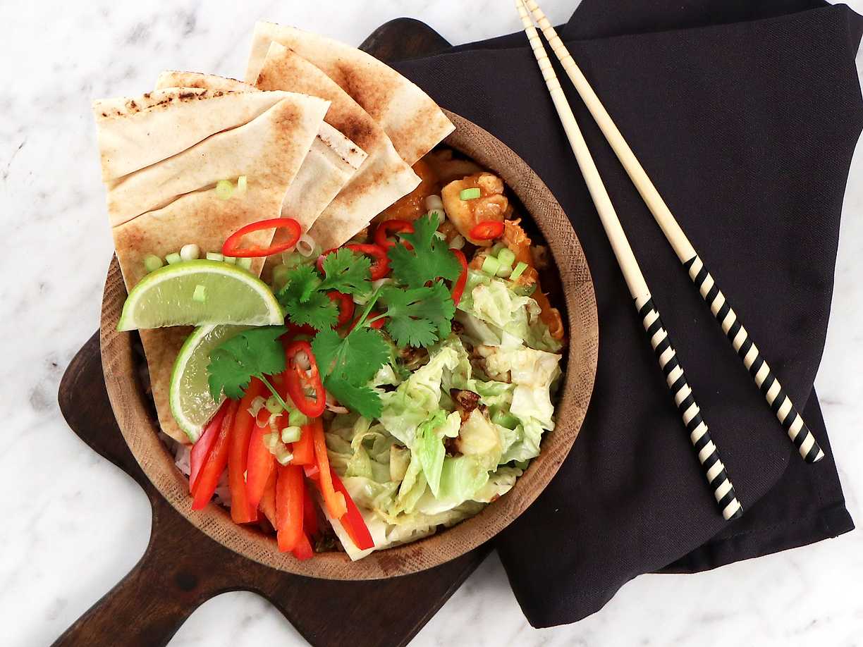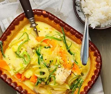 Lime- och ingefärsbakad torsk med grönsaker i röd curry