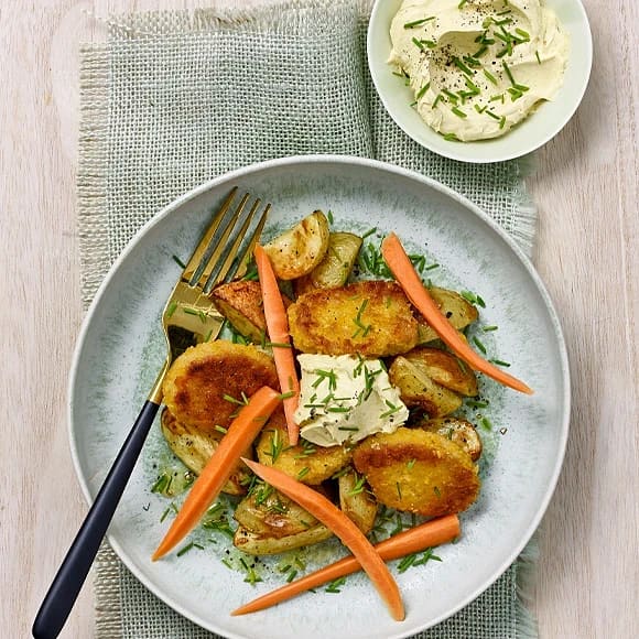 Panerad spättafilé med äpple-och currydipp